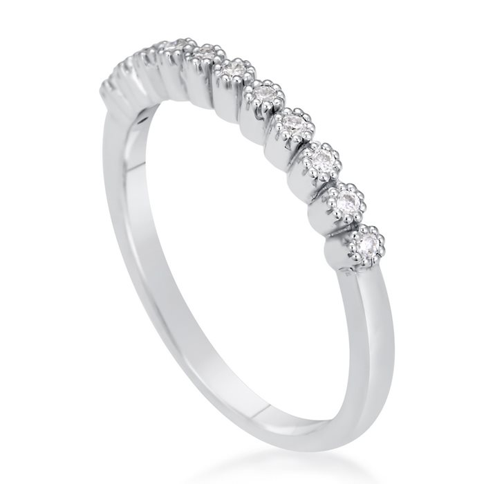 טבעת חצי נישואין משובצת יהלומים בתוך פרחים