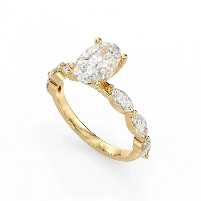 ושני צידיו יהלומי צד בחיתוך "מרקיזה"